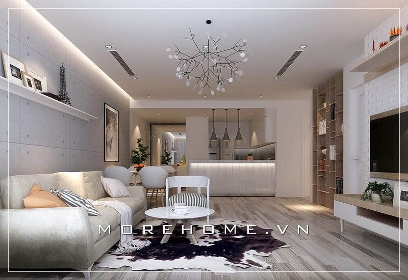 Vẻ đẹp thoáng đãng, thoải mái mà sang trọng đẳng cấp của bộ sofa gỗ óc chó thiết kế theo phong cách hiện đại dáng văng gọn gàng giữa phòng khách căn hộ chung cư diện tích nhỏ.