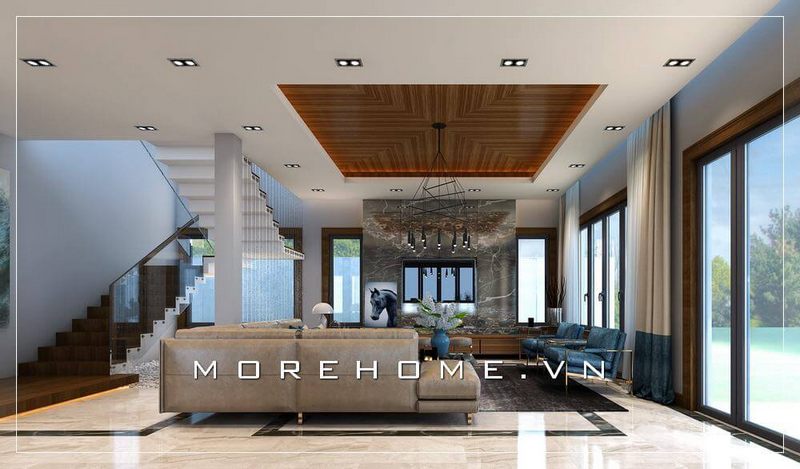 Thiết kế nội thất phòng khách phong cách đương đại đẹp cho biệt thự, nhà phố