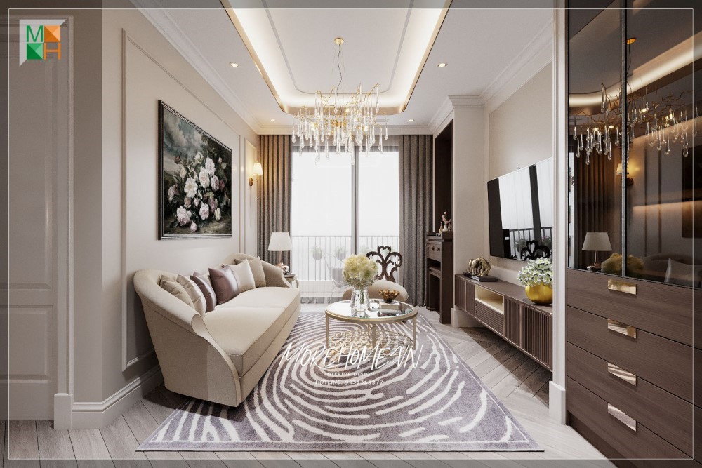 Thiết kế vô cùng phù hợp với căn hộ gia đình có diện tích vừa phải đi theo phong cách tân cổ điển