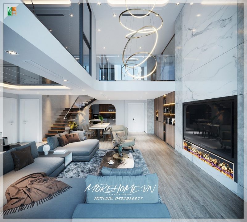 Nét đẹp hiện đại độc đáo, sang trọng, sự kết hợp ấn tượng trong phòng khách căn hộ thông tầng như Duplex, Penthouse.