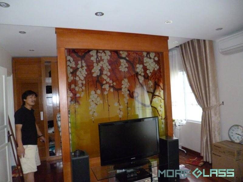 Mẫu thiết kế kệ tivi kết hợp tranh kính cường lực 3D nghệ thuật cho phòng khách chung cư, nhà phố