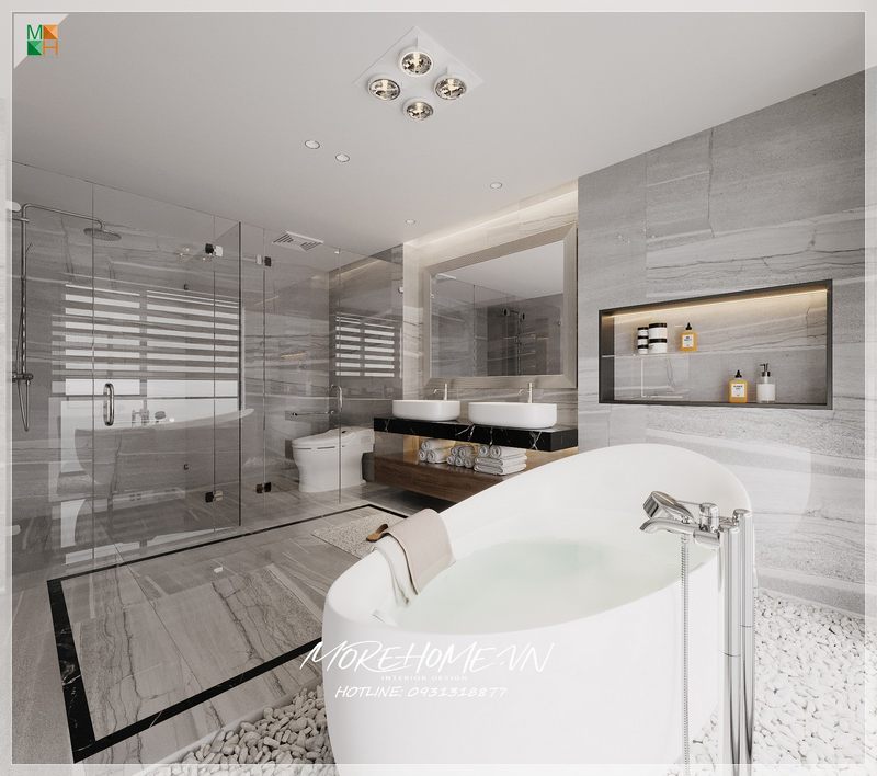 Mẫu thiết kế phòng tắm master được trang bị những sản phẩm nội thất vệ sinh hiện đại, cao cấp giúp tạo nên không gian thư giãn sang trọng, hiện đại và thoải mái cho gia chủ.