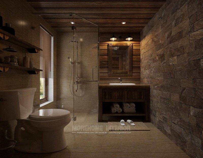 Tủ lavabo gỗ tự nhiên kết hợp với bàn lavabo màu sắc đồng bộ của tre và gỗ sẽ tạo nên một không gian tinh tế và sang trọng.